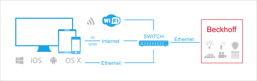 Multifunctional control of Beckhoff and any AV equipment from iPad/iPhone/iPod touch, Mac, Android or Windows panels.