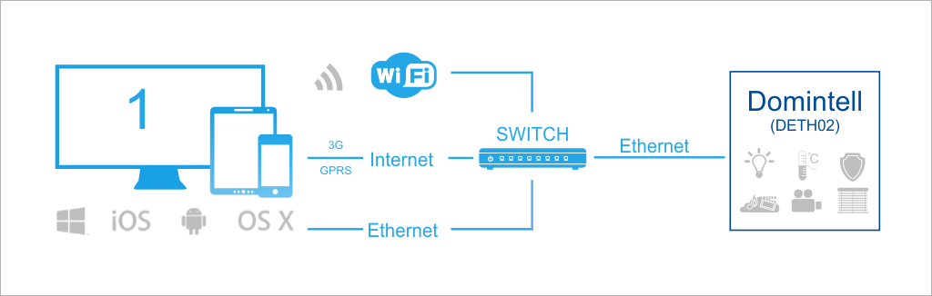 Control from any part of the world: via your local net or the Internet (Wi-Fi, 3G, 4G, GPRS).