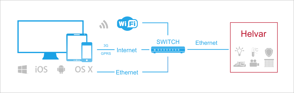Control from any part of the world: via your local net or the Internet (Wi-Fi, 3G, 4G, GPRS).