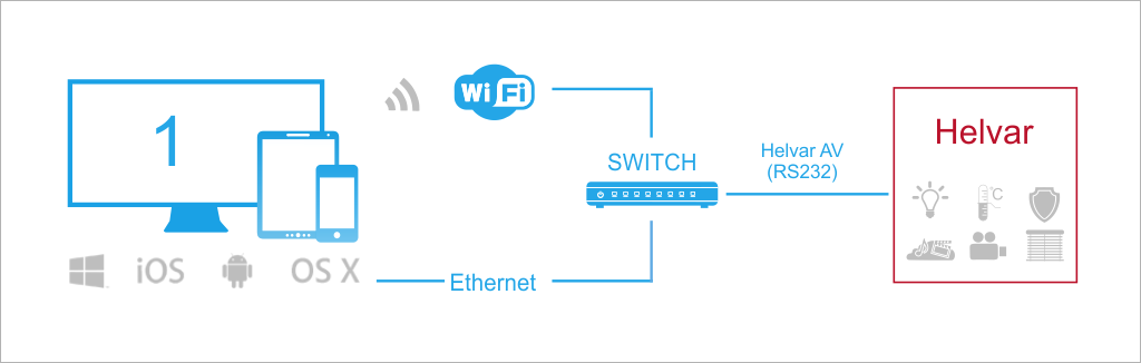 iRidium for HelvariRidium controls Helvar equipment as well as any Audio/Video equipment, Media Servers with full 2-way communication.