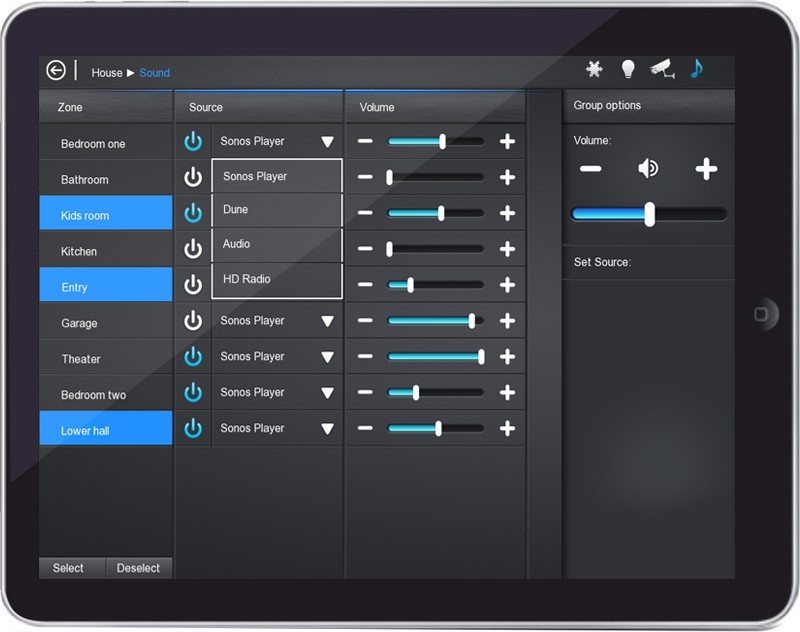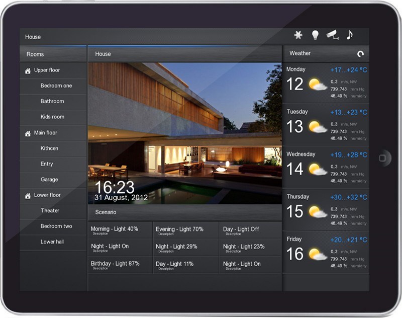 Controls: light, climate, security, Audio/Video equipment, shutters, etc.