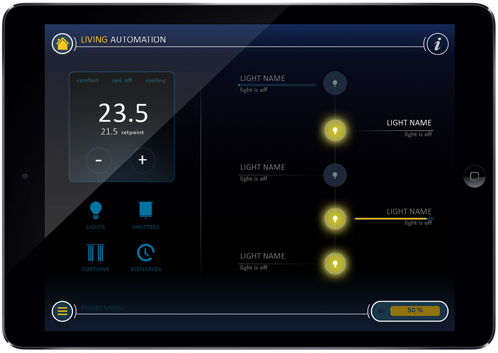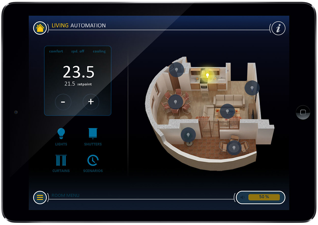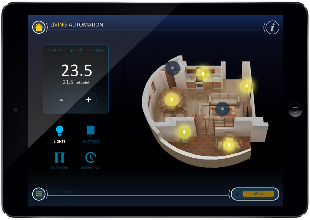 Features: lights, climate, security, Audio/Video, shutters, Intercom, Cameras, Scenario, Weather