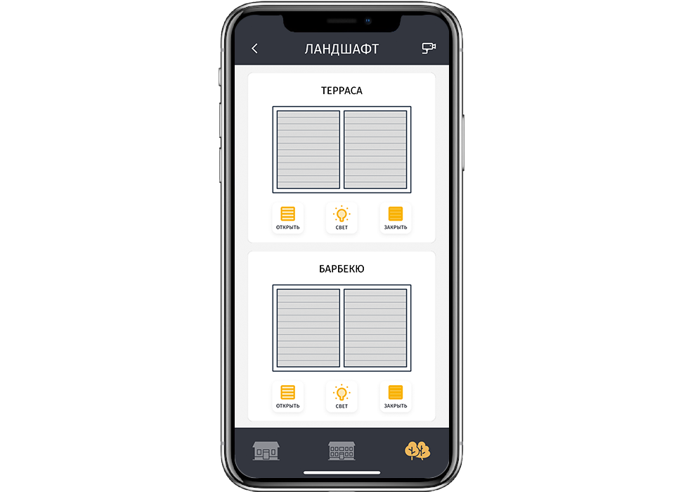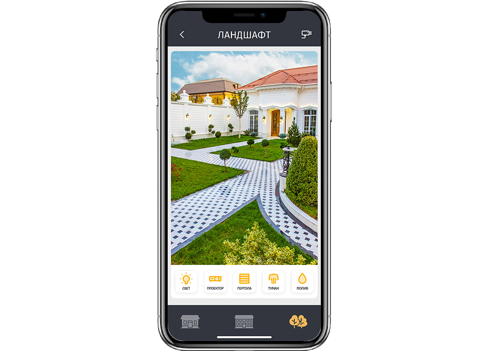 1. An exclusive iRidium interface was created for this purpose. It allows to control all functions and systems of the house. iRidium is used to control lighting, conditioning, heating, music, TV, IP TV, a projector, a projector screen, a lift for a ceiling lamp, pergolas, automatic plant watering, water fog, fire security system, video surveillance and a steam generator for hamam.