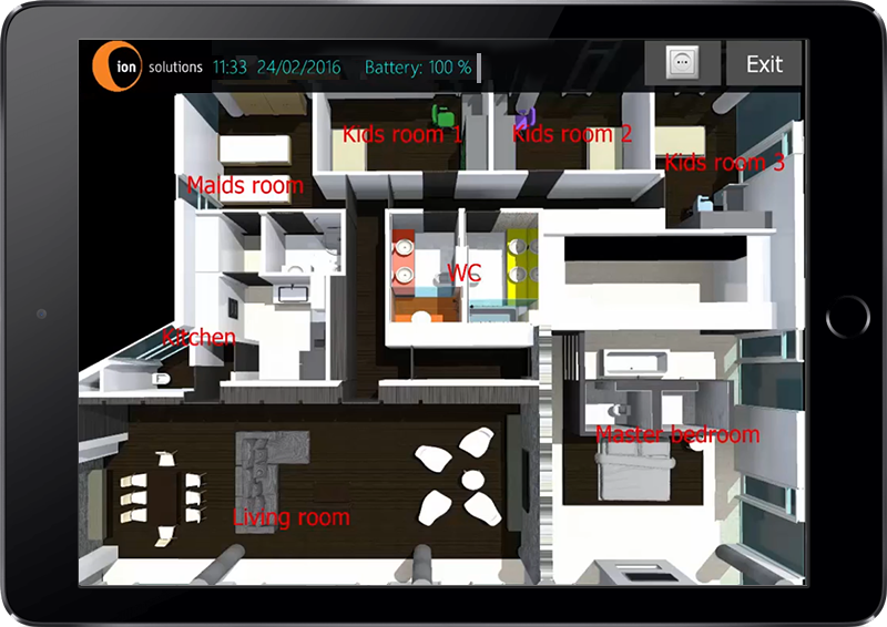Managing with lights, floor heating, air conditioning systems, curtains.