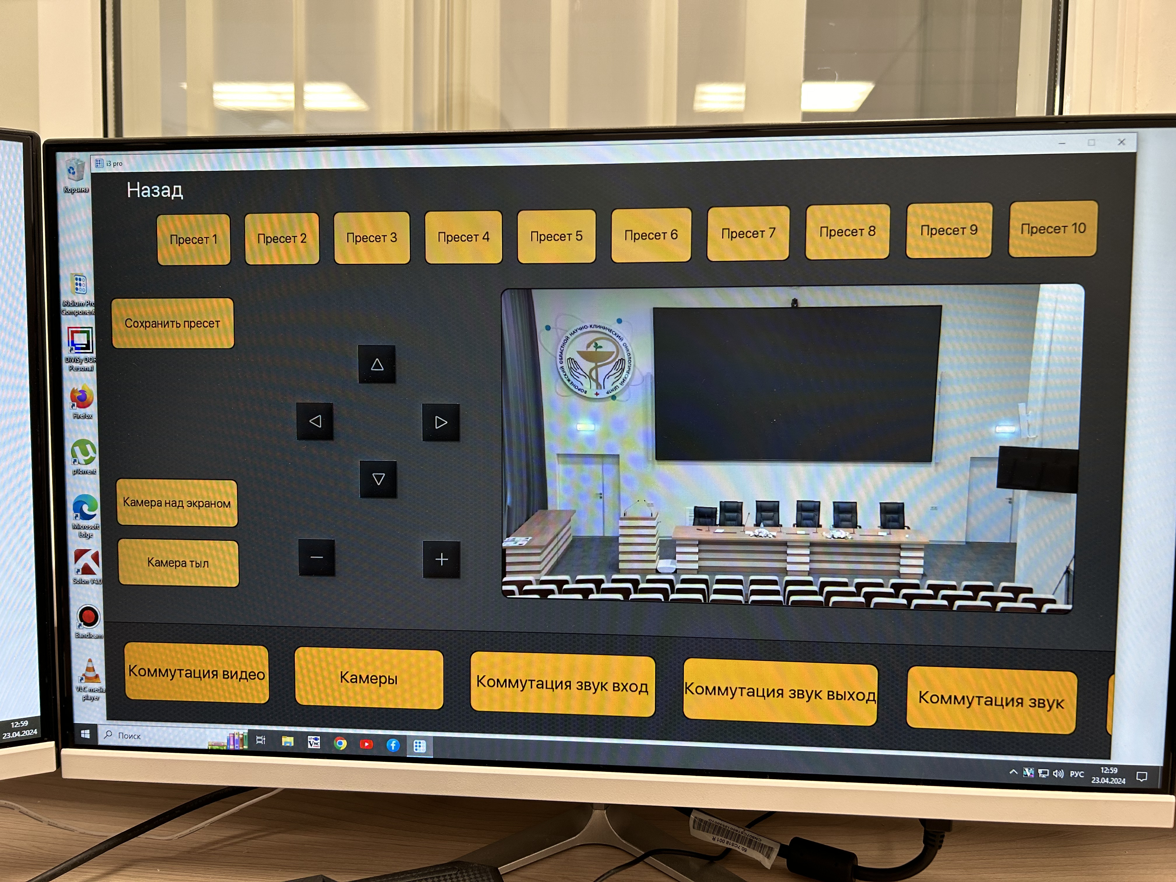 ✔️ видеоконфернц связь реализована на базе системы Panasonic KX-VC1000, PTZ-камерами Prestel для обеспечения высококачественных трансляций и граббером для проведения сеансов Телемост;