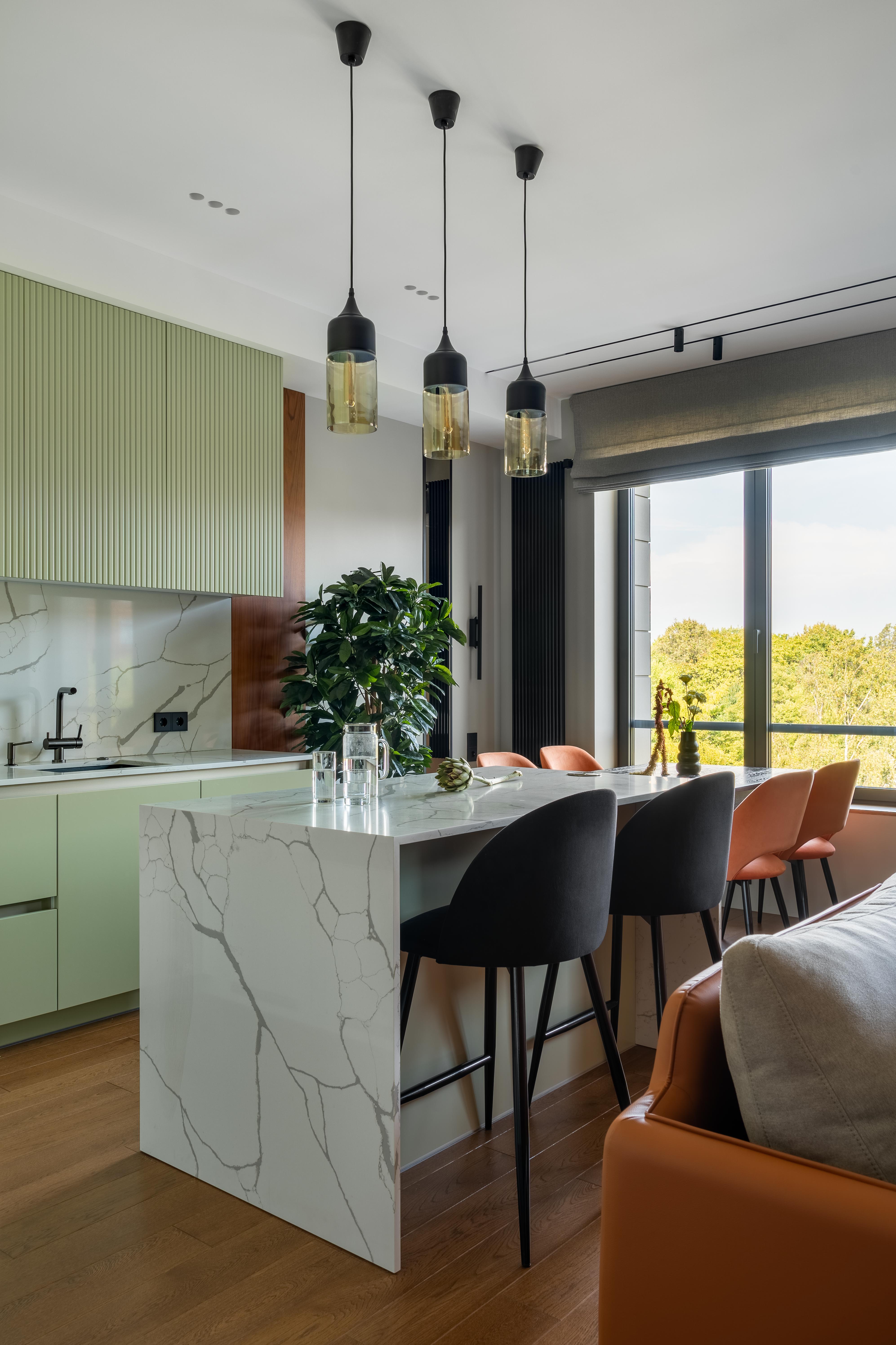 Инженерно сложный и интересный проект квартиры площадью 100м2 в ЖК “Петровский Квартал на воде” в Санкт-Петербурге с кастомной визуализацией на
