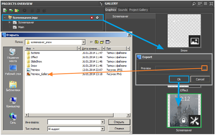 3.1. Open Gallery / Graphics, create a new folder and name it Screensaver with the help of Add Folder button.