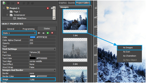 In this post, I’ll describe how to make a screensaver of a slideshow of photos with the effect of falling snow in iRidium GUI Editor. It’s only one of the possible variants of animated screensavers. But using the step by step instructions given below as the basis for your work you can create any animated screensaver.