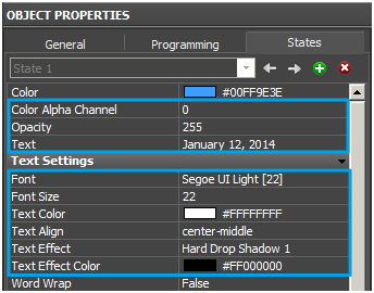 Set its parameter and view in Object Properties / General and States.