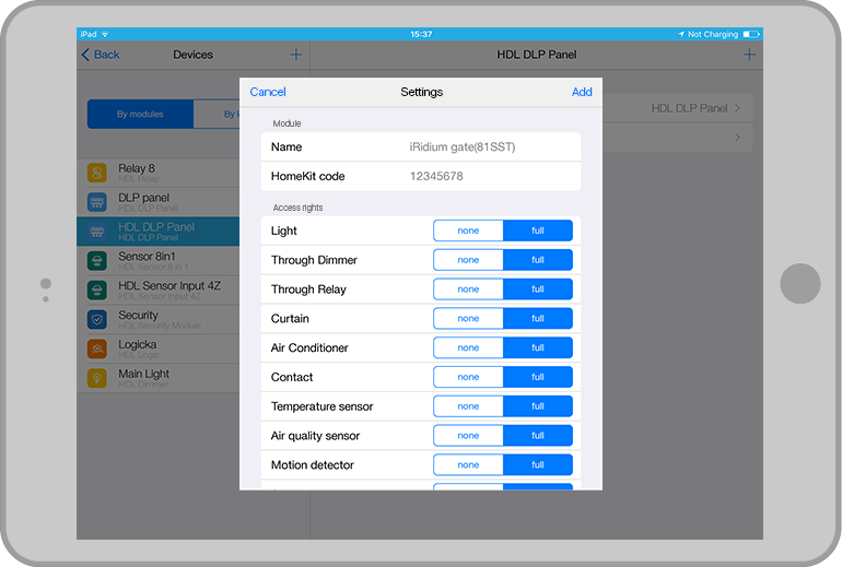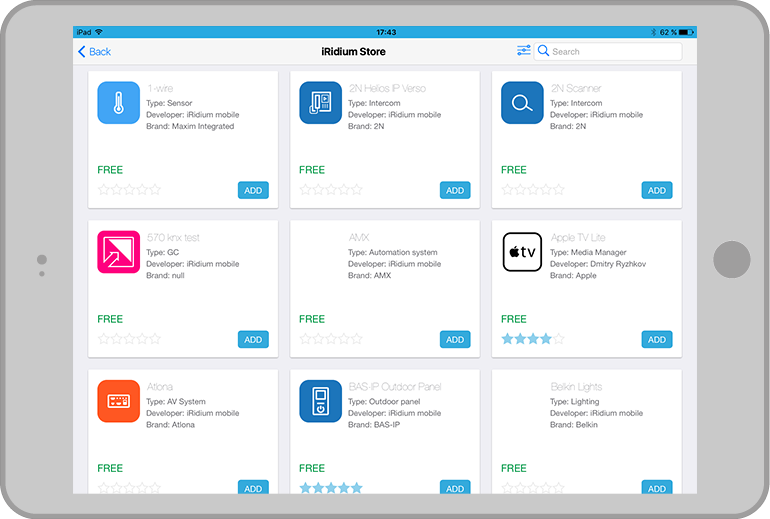 After downloading modules for controlling equipment, you have to open iRidium store and find a voice control module. To download it, click the Add button.