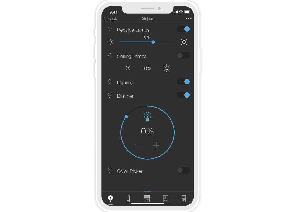 control widgets in rooms are united into functional groups;