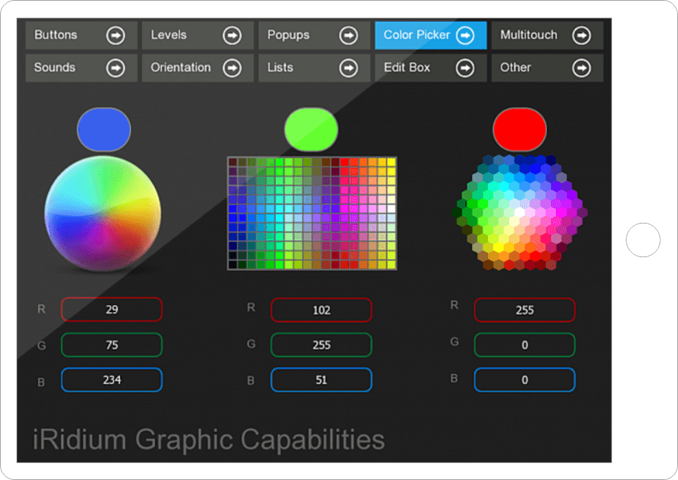 This project presents basic graphic capabilities of iRidium (without using scripts).