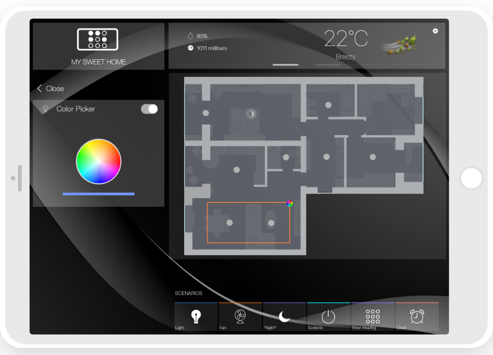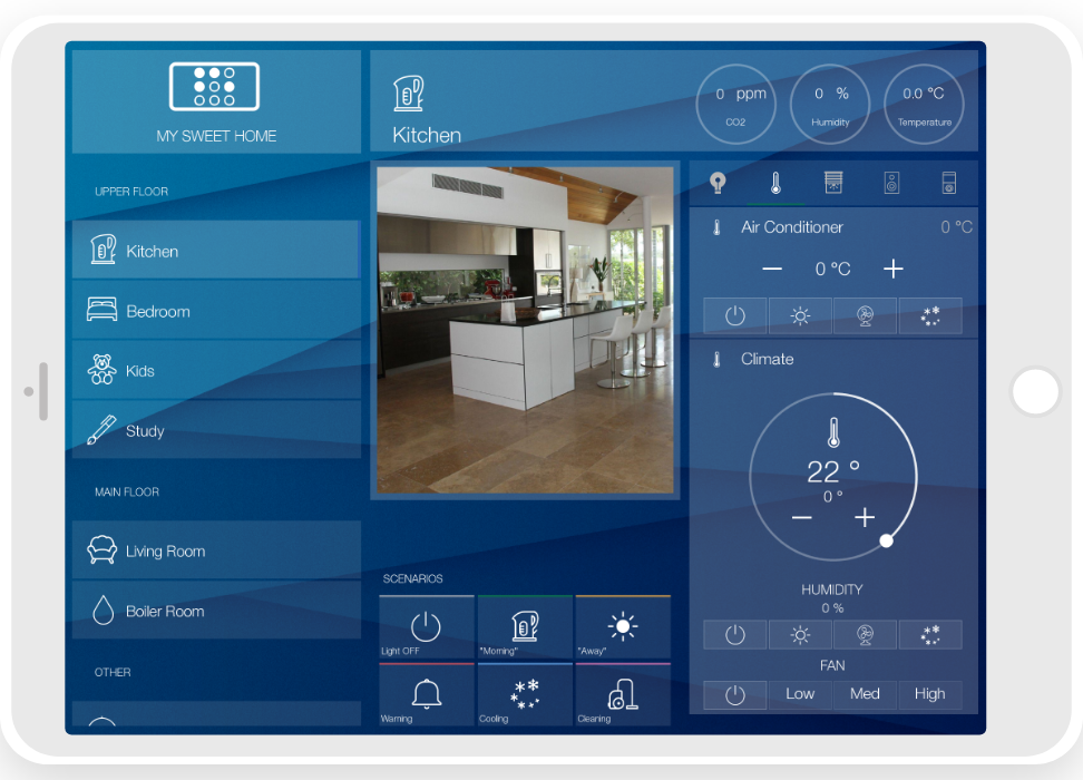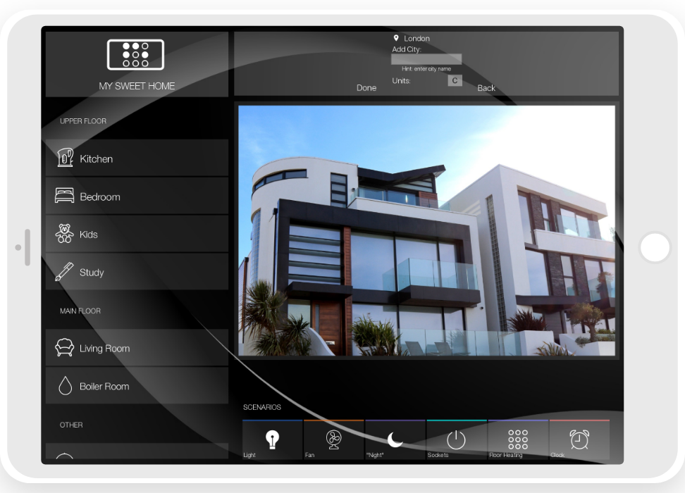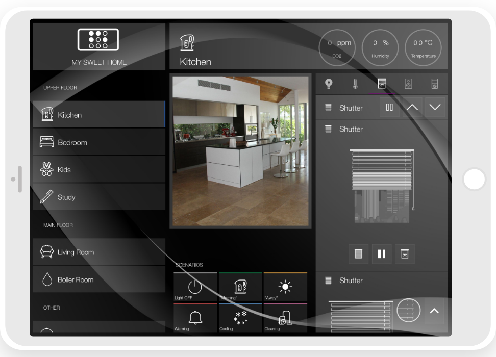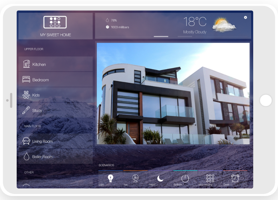 - ready widgets to control light, blinds (with animation), cameras, climate, Audio/Video equipment, scenes.
