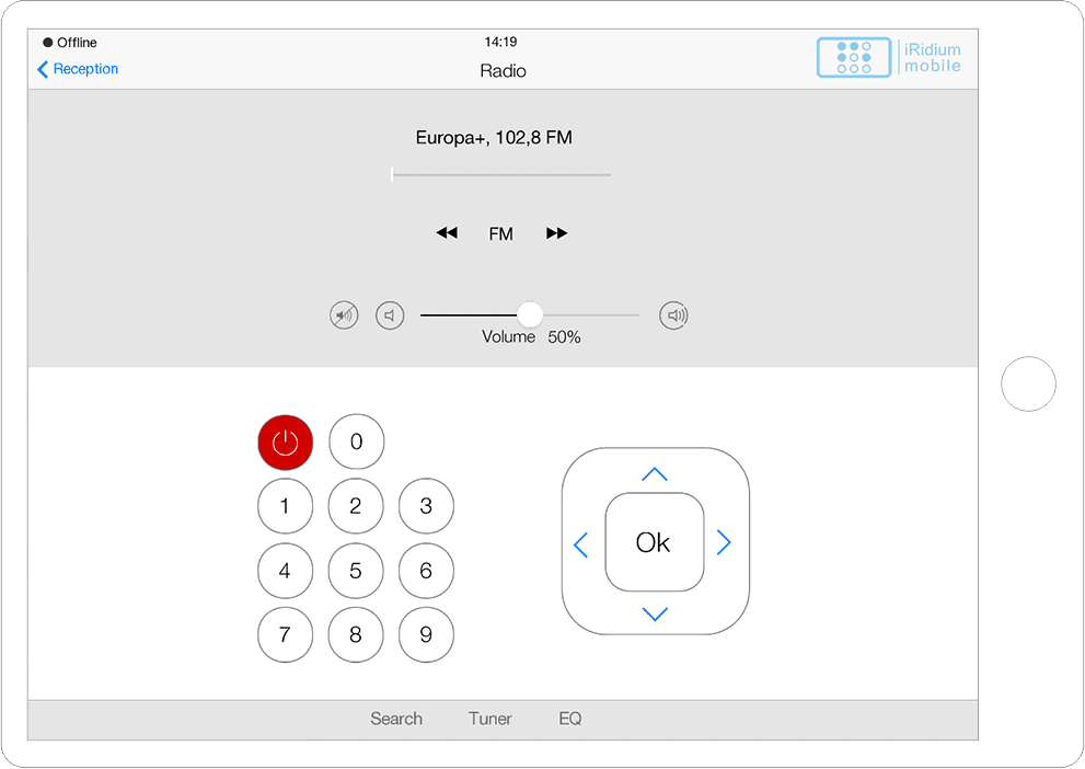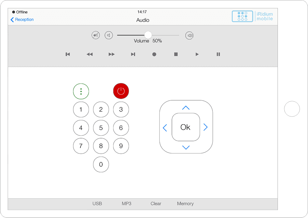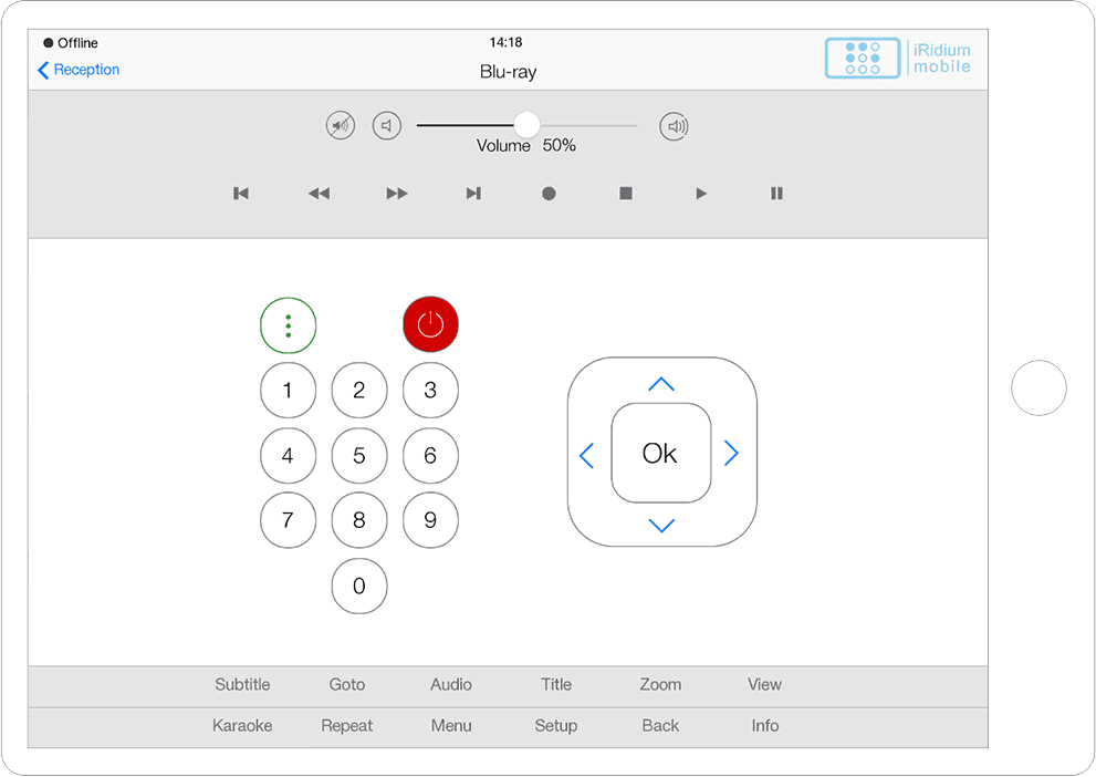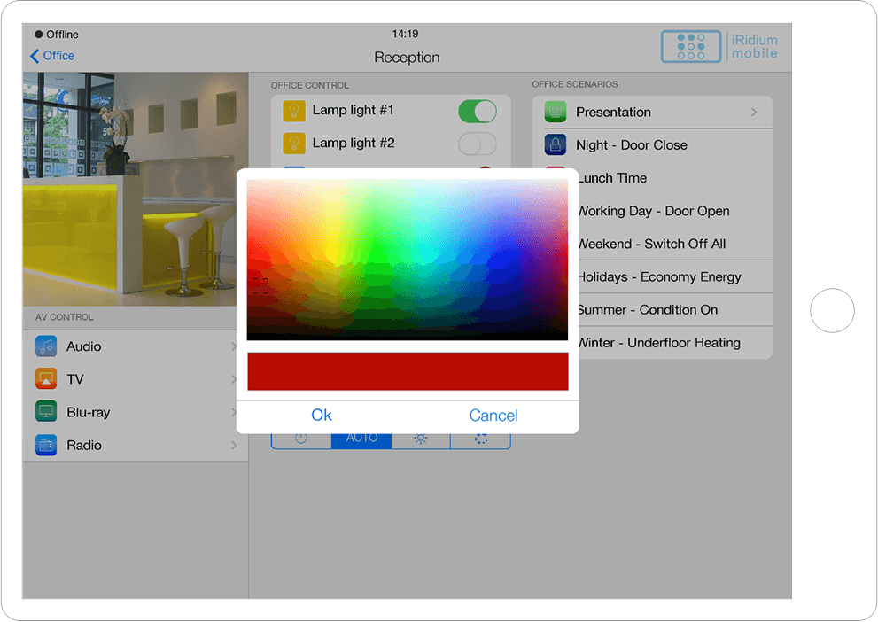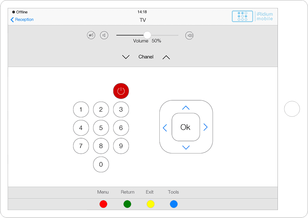 Interface in the easily recognizable and beloved iOS style with a variety of graphic items to control all A/V and automation equipment of smart offices, hospitals, etc.