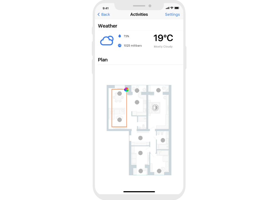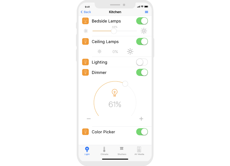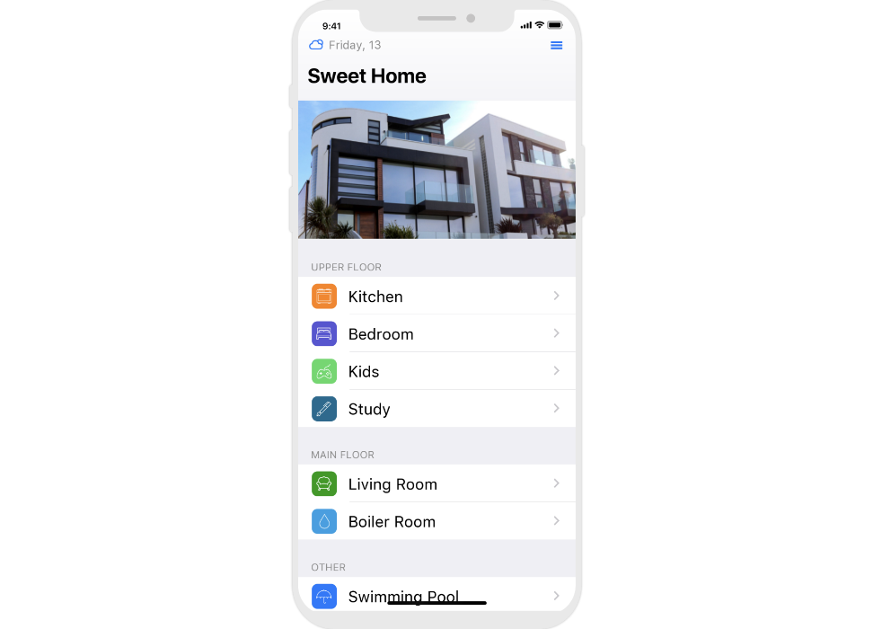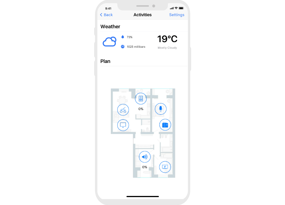 control widgets in rooms are united into functional groups;