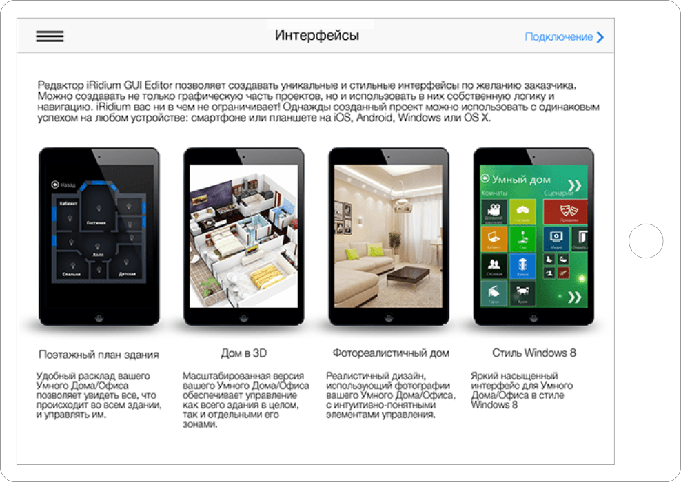 Trade Show Interface is meant to help you describe iRidium capabilities in a manner that is stylish and to the point.