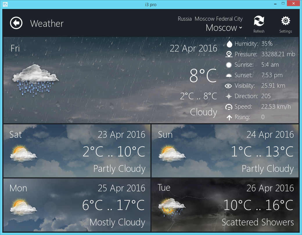 A fully-functional module to view weather forecast for 2 days from iPad, iPhone, MAC and devices on the basis of Android and Windows. Instruction Required license: license with AV & Сustom Systems driver Buy a license