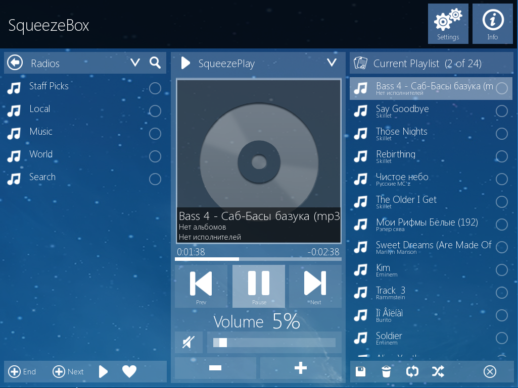 – control of playing (play, pause, next track, previous track, rewind by time)