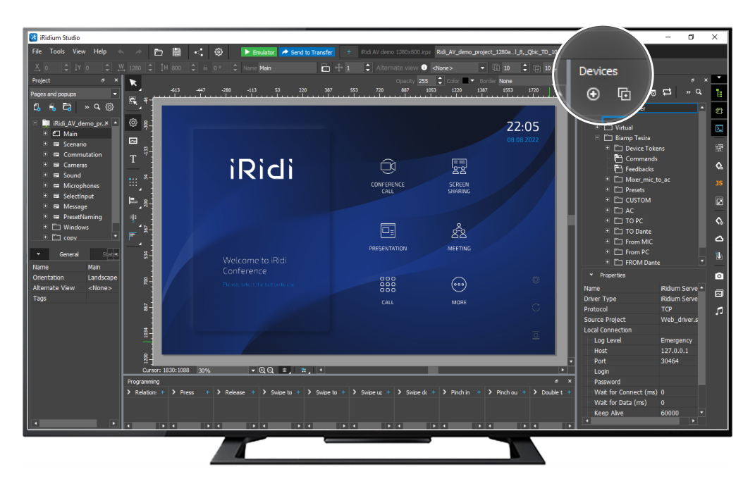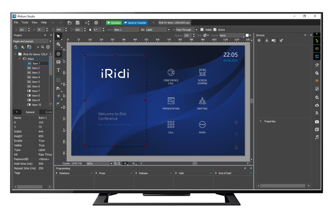 It is often required to set complicated logics of equipment work. iRidi JavaScript allows to realize all demands of a customer.