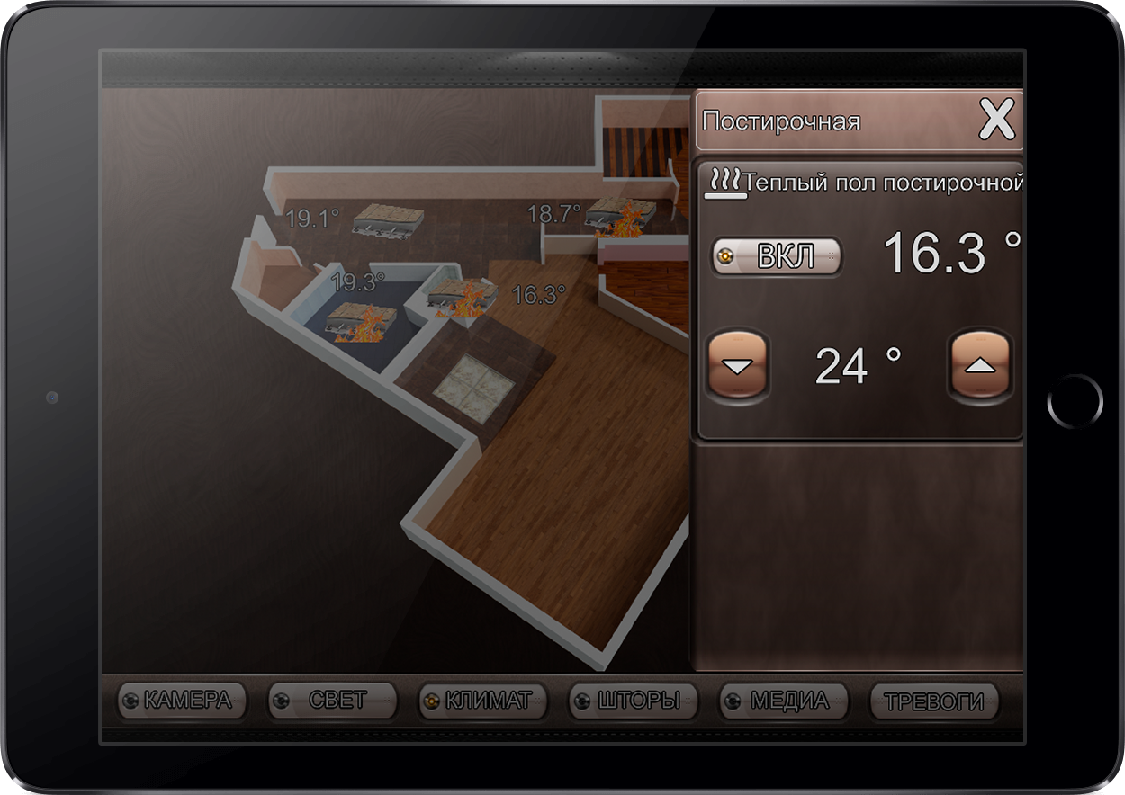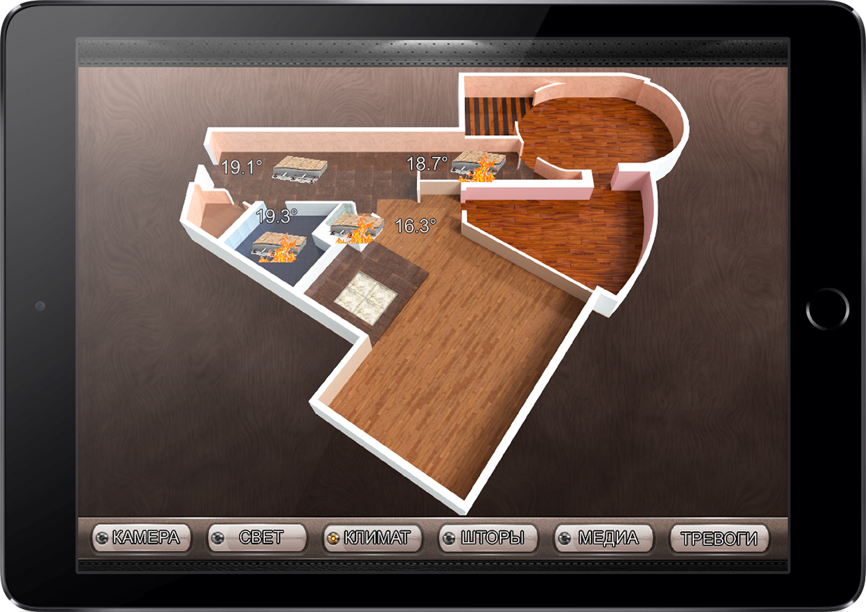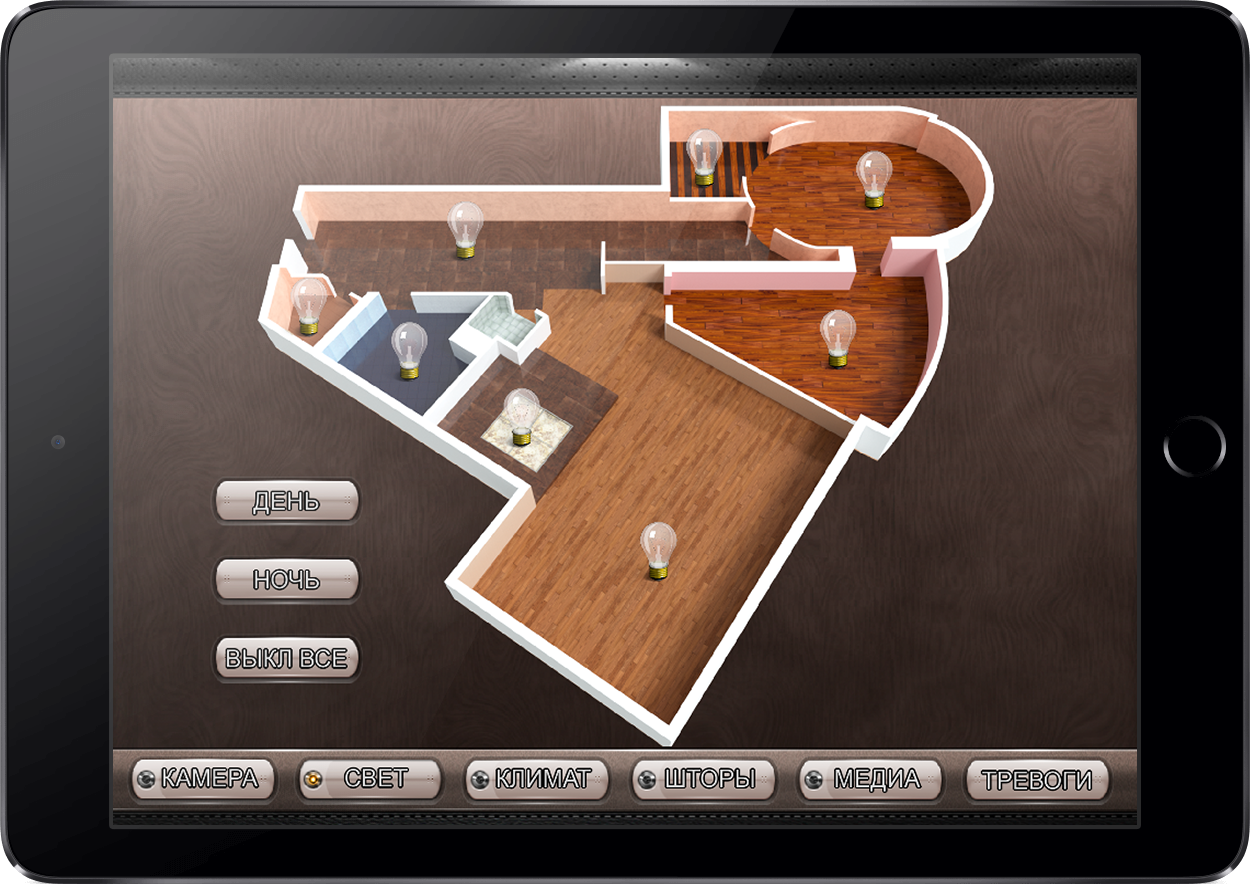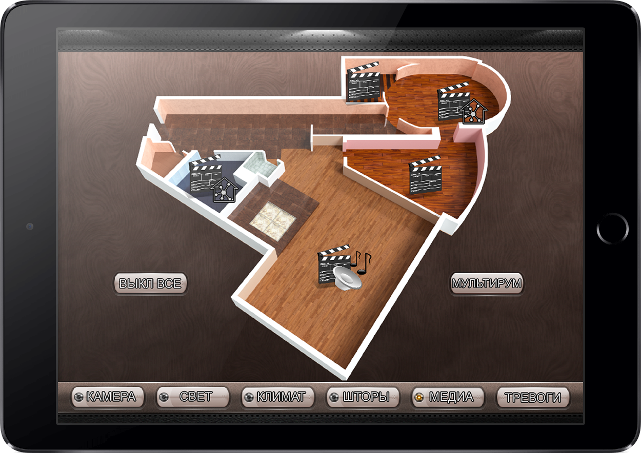It’s an 80-square-meter apartment in an elite apartment building on Krestovsky Island. The project feature control of light, blinds, climate, audio-video multiroom. The project is controlled from mobile devices and touch panels.