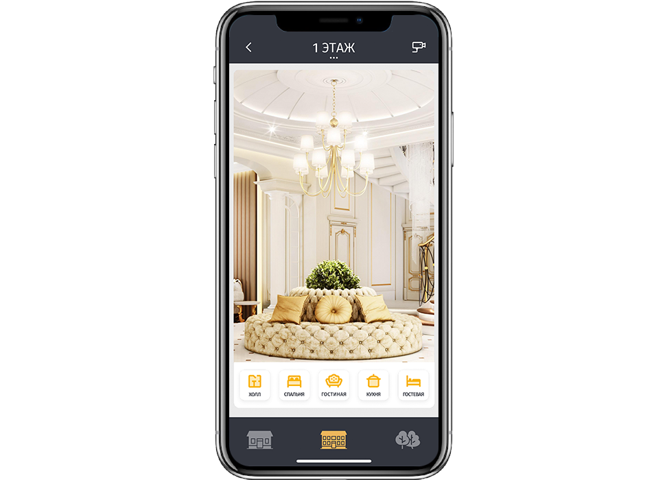 1. An exclusive iRidium interface was created for this purpose. It allows to control all functions and systems of the house. iRidium is used to control lighting, conditioning, heating, music, TV, IP TV, a projector, a projector screen, a lift for a ceiling lamp, pergolas, automatic plant watering, water fog, fire security system, video surveillance and a steam generator for hamam.