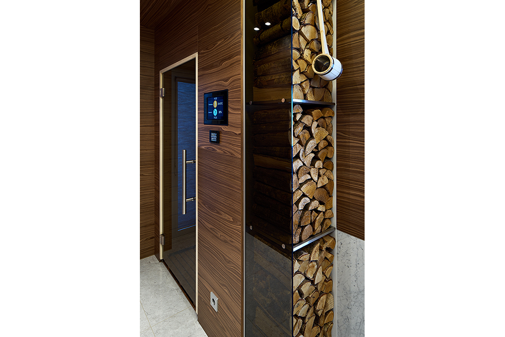 Climate is created and supported by Domintell automation, ventilation and conditioning systems by different manufactures that work via Modbus protocol. System of automatic ventilation is realized. It gets switched on and selects required power depending on the data from air quality sensors with a capability to control air humidity. The TV-set is installed on the ceiling turning mount. It allows to watch video comfortably from different places, standing at the cooker in the kitchen or sitting in the arm-chair in the sitting room. Besides the TV-set there is a system of projecting video in the sitting room.The screen and the projector are built-in the ceiling and appear only when they are switched on. When “projecting video” scene is on, and if the TV-set is turned, first it goes back to the initial position and then the screen starts moving. And when the screen is down, TV mount is blocked.
