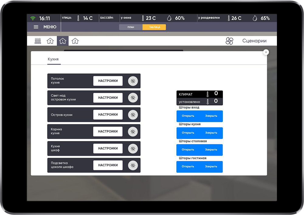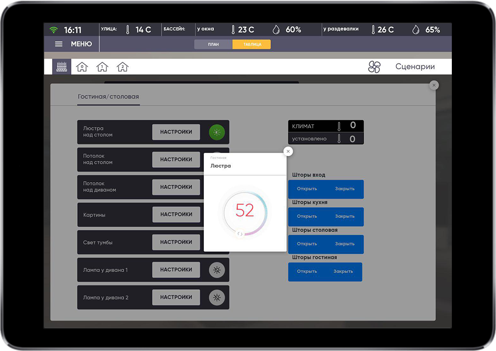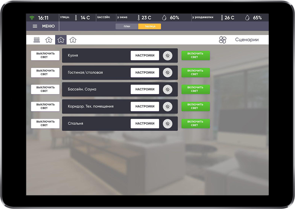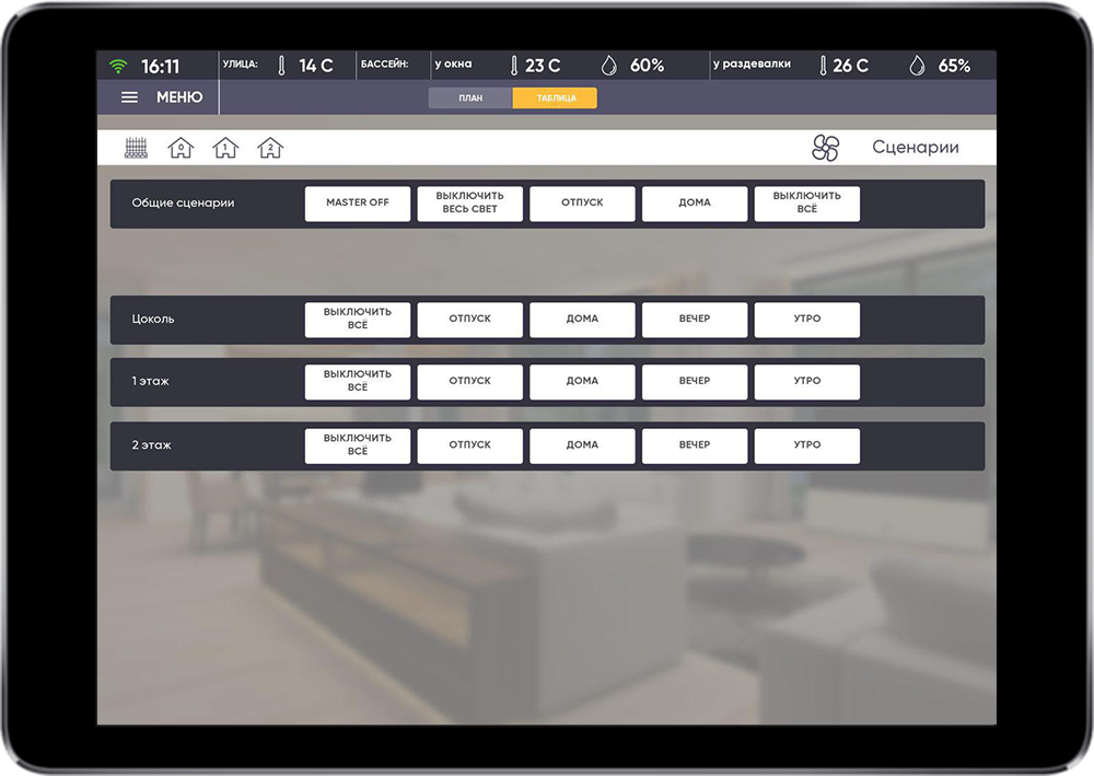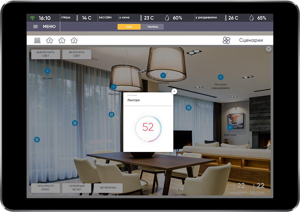 The main task was to realize simple control of comfort systems and single security control of the house and the surrounding territory.