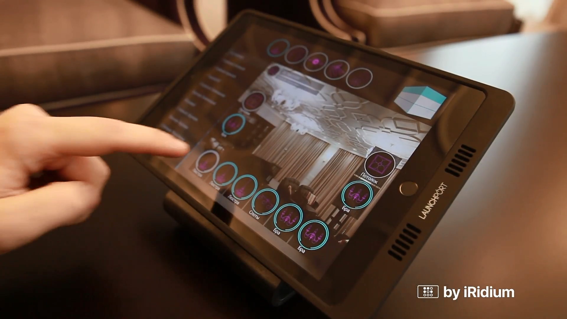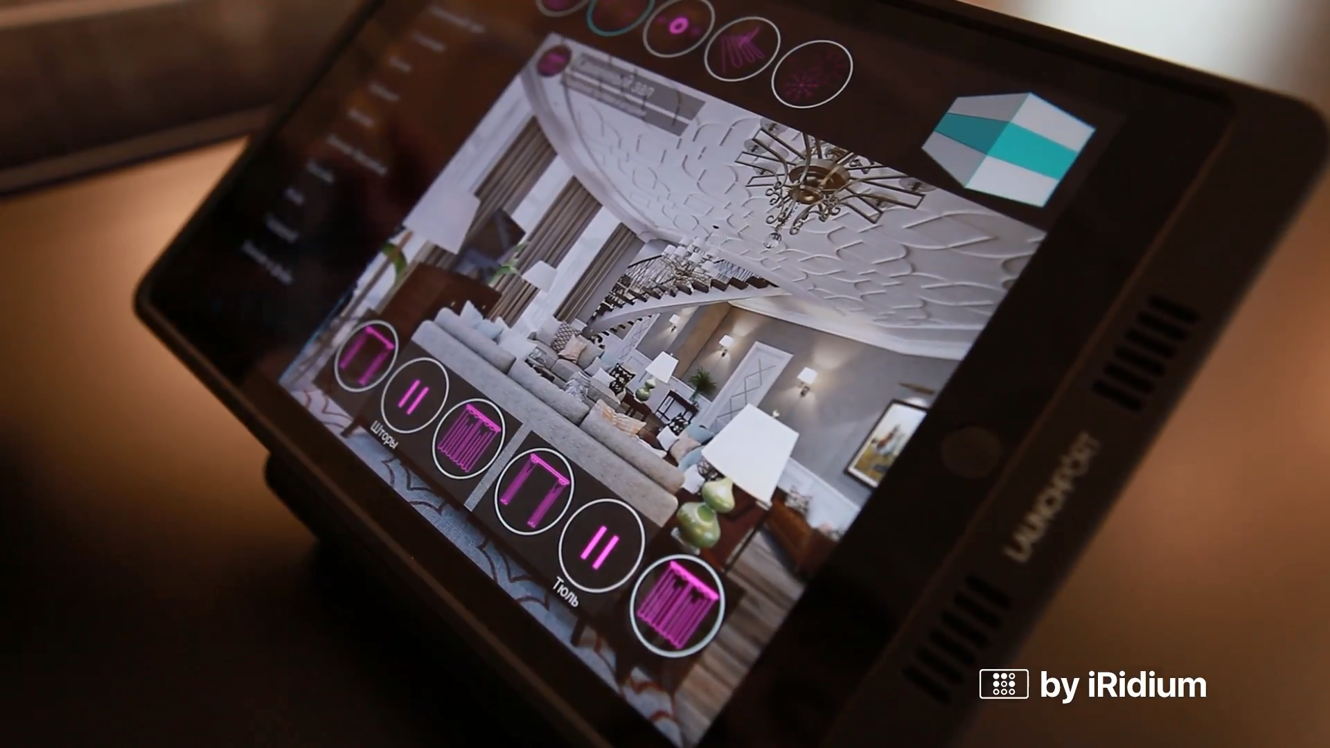 It’s a free-floor house in Almaty. Smart home system was installed in 33 rooms: 6 bedrooms and bath-rooms, a study, a fireplace lounge, a play room, a kitchen, a dining room, a swimming-pool, a gym and a home cinema. Lighting is also controlled on the territory surrounding the house. 4 iPads Air are used to control: 2 wall-mounted iPads on each of the living floors and 1 iPad is not fixed anywhere, 1 iPad is used to control the home cinema.