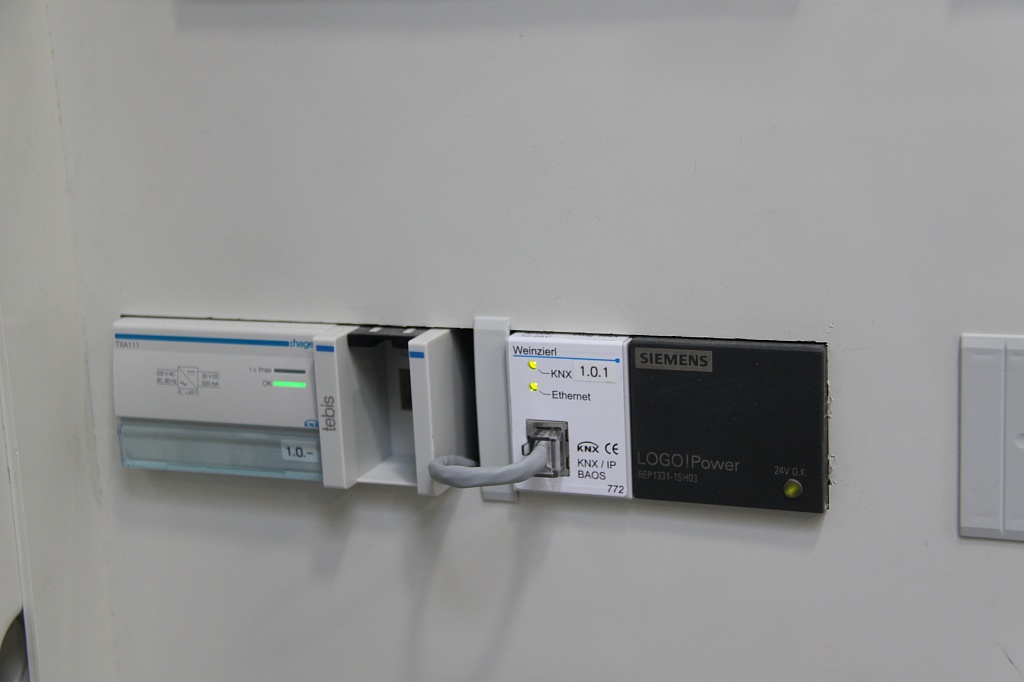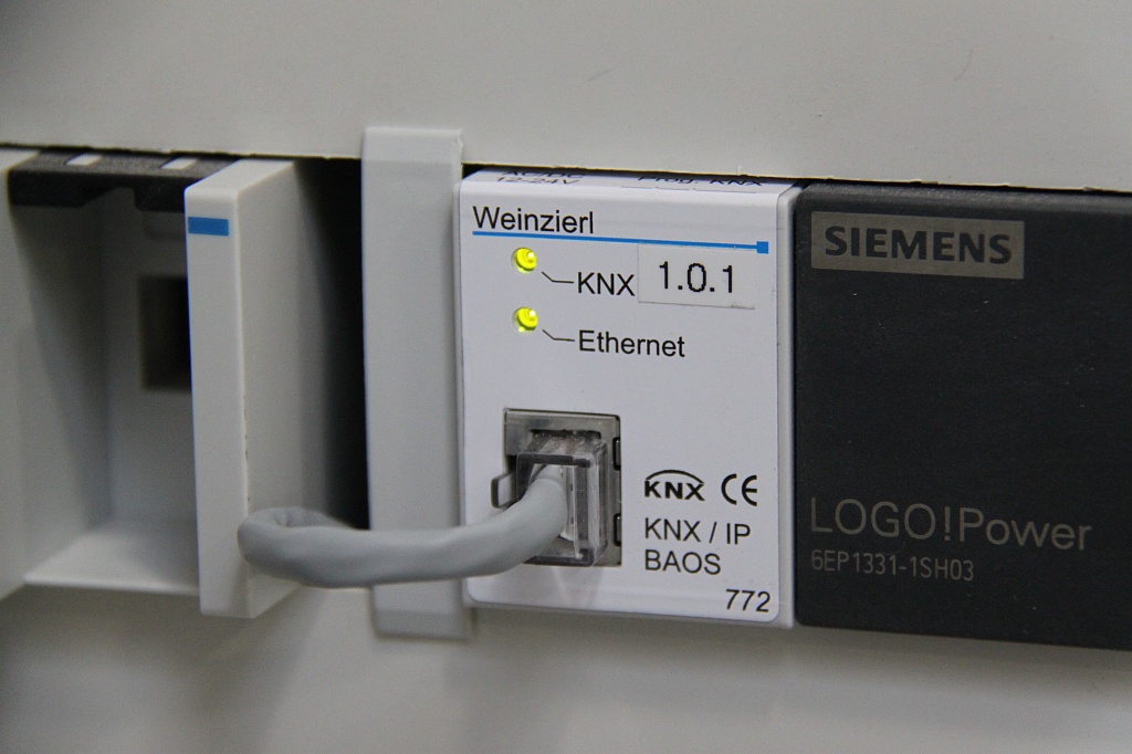 A Weinzierl KNX BAOS772 is used for the communication between Touch panels with iRidium mobile and KNX.