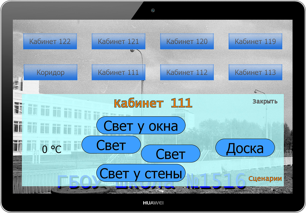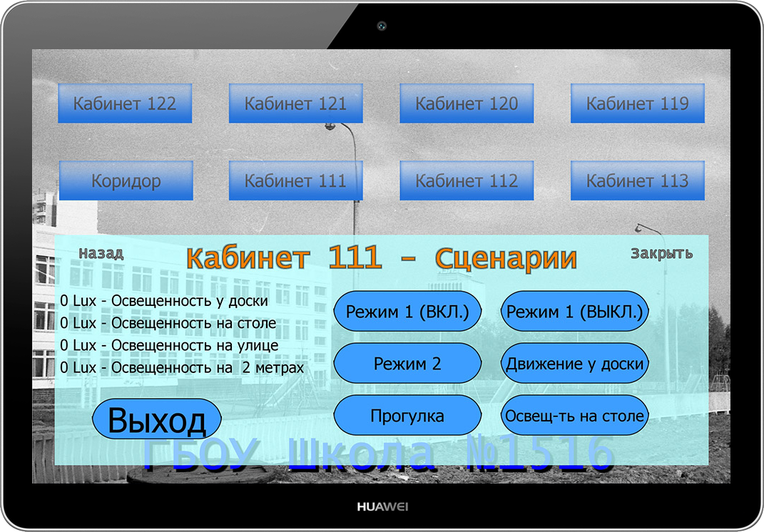 iRidium allowed to realize different scenes to turn on/off light groups on the basis of set algorithms, presence sensors, light sensors and motion sensors.
