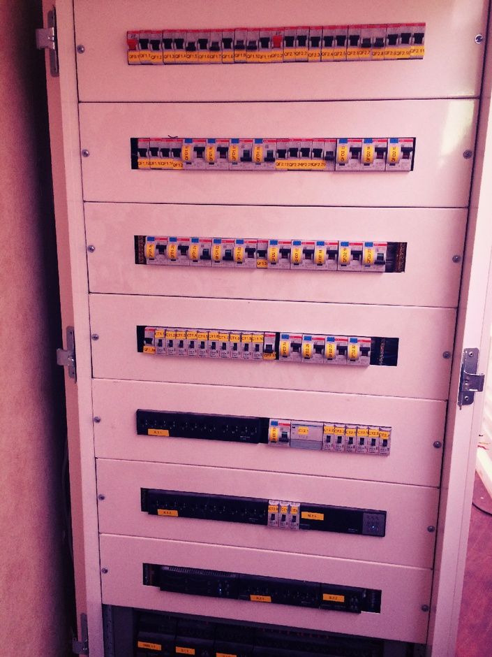 Complete smart house. Control of lighting, power load, blinds, heating, ventilation, electricity, warm floors, video surveillance, multimedia server and multimedia system.
