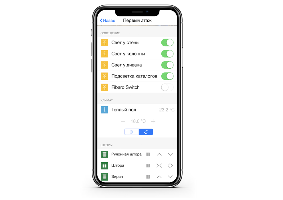 - control of light, blinds, climate (from wall-mounted switches and from a smartphone/tablet);
