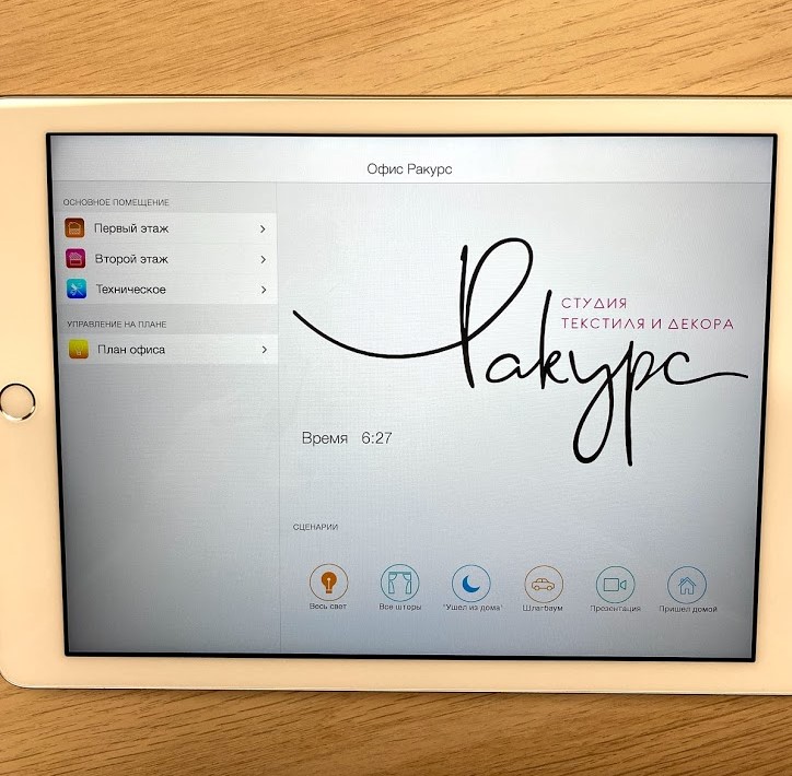 The “Leave office” scene turns off light, a contactor, closes blinds, closes the screen (if there was a presentation), turn the thermostat into an economical mode. The scene can be activated with the help of a button switch at the door (by holding a button).