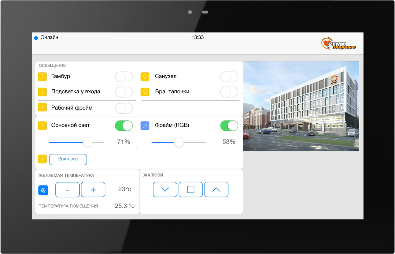 iRidium was selected as visualization and integrations of different protocol were required. And iRidium is a good financial solution. Another advantage is that it’s convenient to launch the same software on panels and the server.