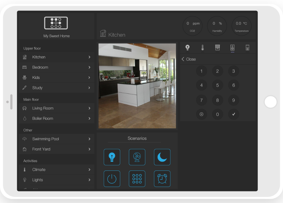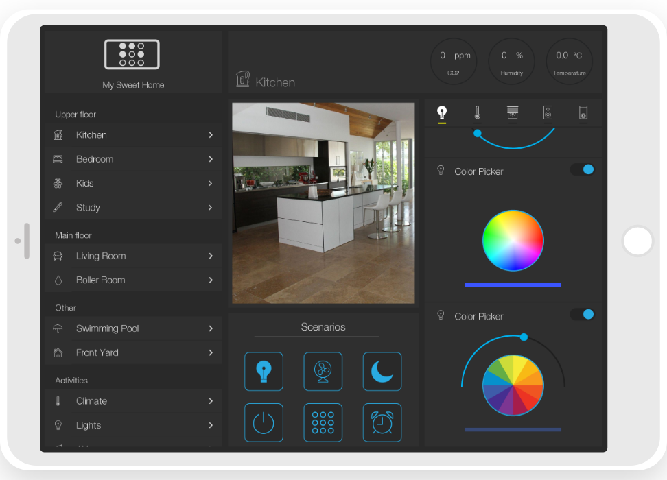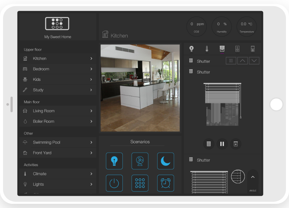 • ready widgets to control light, blinds (with animation), cameras, climate, Audio/Video equipment, scenes.