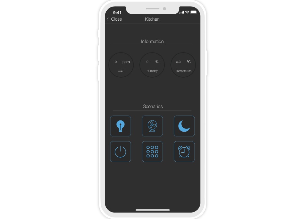 • info blocks of temperature, humidity, CO2 level in rooms;