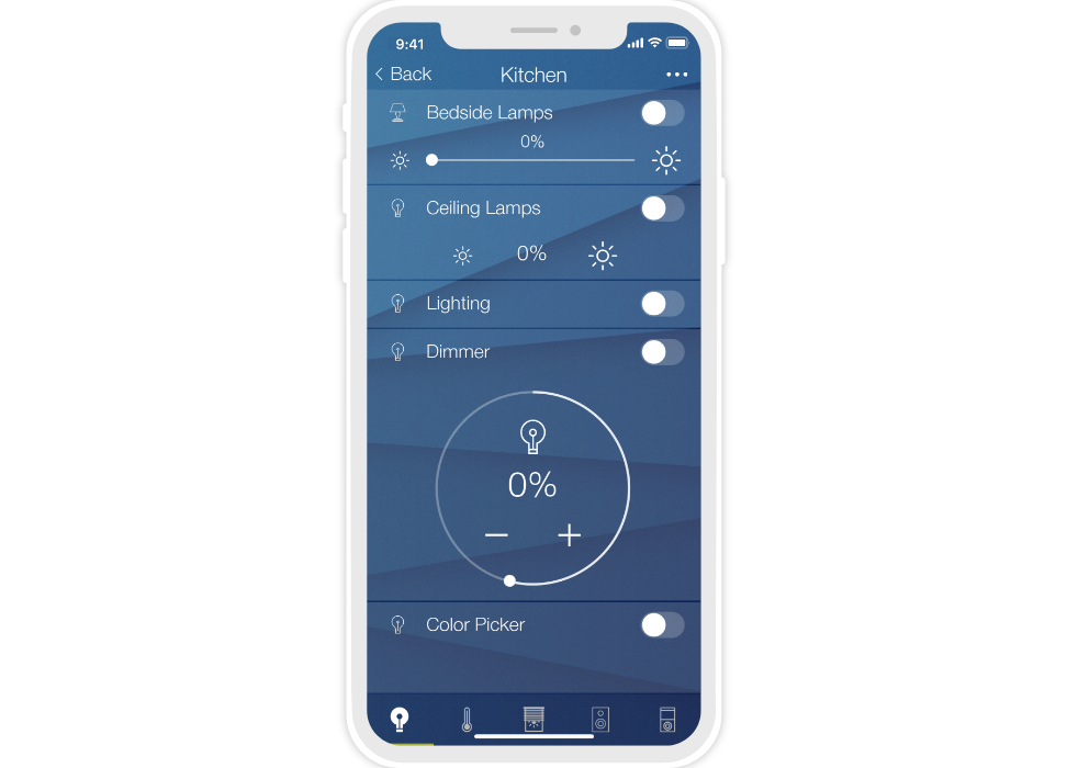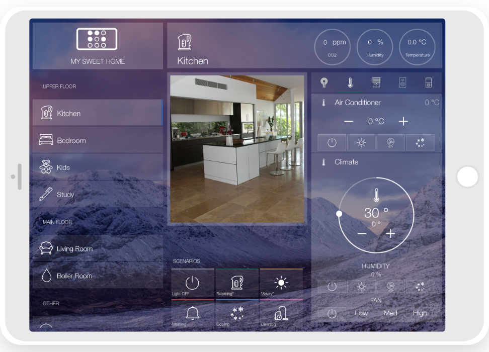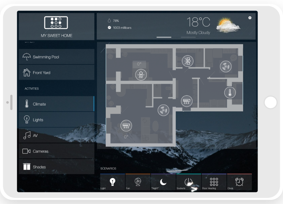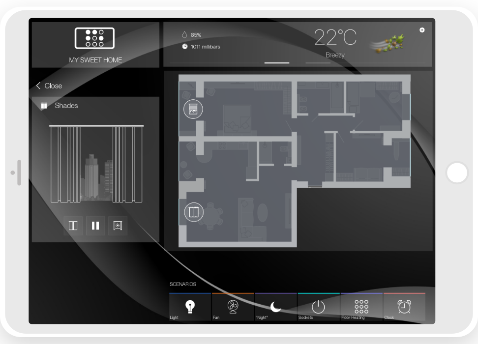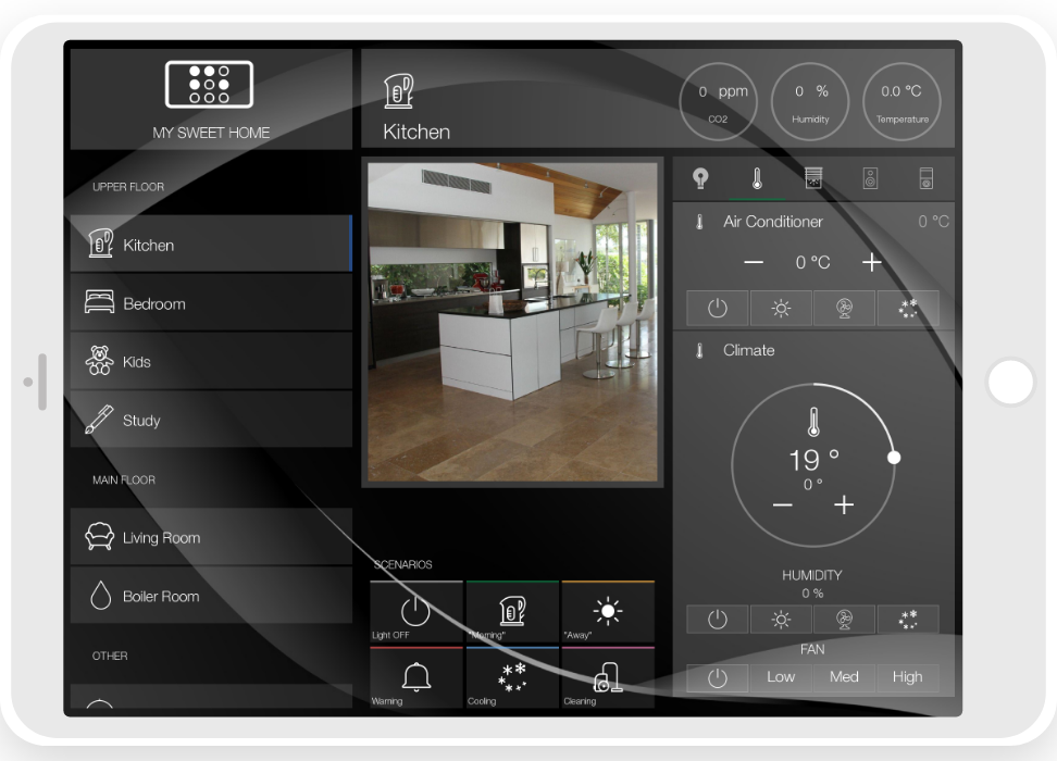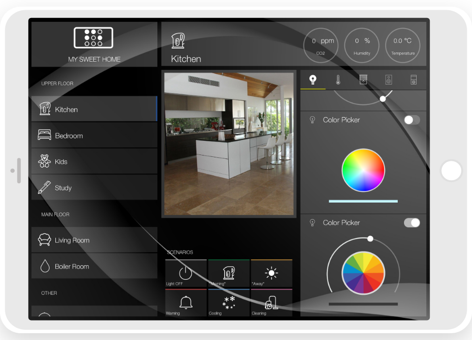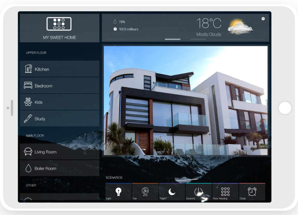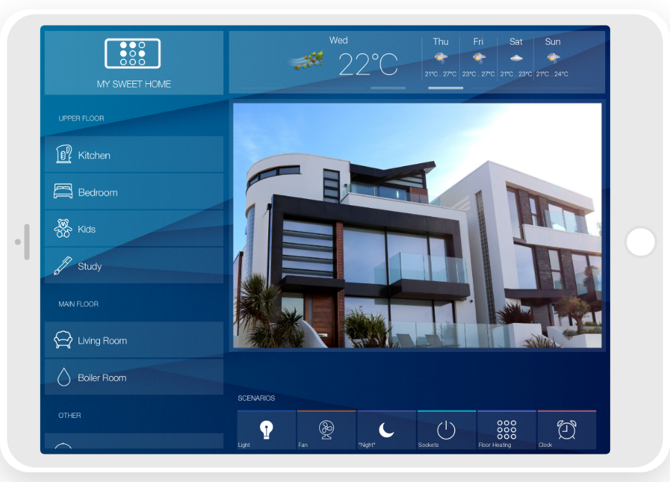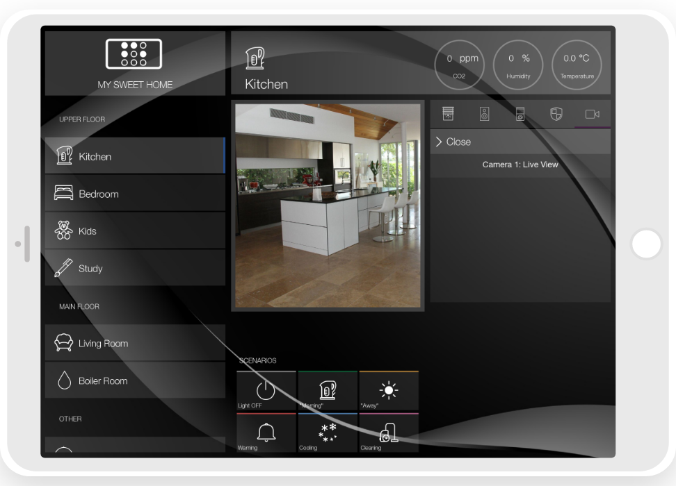 • ready widgets to control light, blinds (with animation), cameras, climate, Audio/Video equipment, scenes.