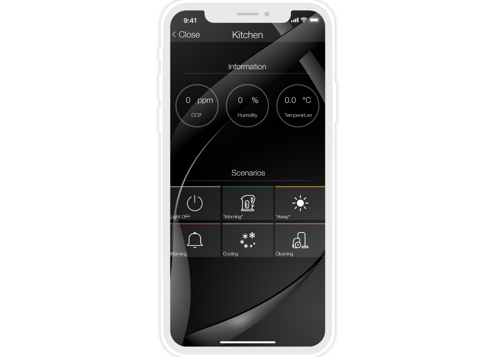 • info blocks of temperature, humidity, CO2 level in rooms;